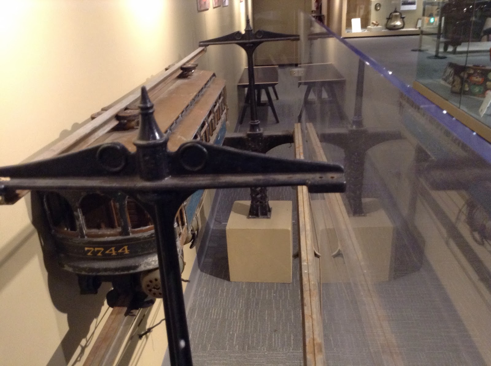 On the next floor, there was a large exhibit on railroads. This is a model of a monorail design proposed for Detroit in 1918...